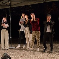 Beim Best Of-Slam im Gartentheater Herrenhausen waren die Slam-Poet*innen Jule Weber, Tabea Farnbacher und Yannick Steinkellner aus Bochum, Frank Klötgen aus München und Matti Linke aus Hannover mit dabei. Durch den Abend führten Henning Chadde und Henrik Szanto.